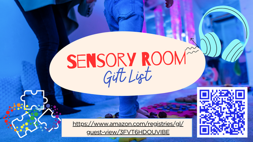 To assist with the sensory room, please see the Amazon Wish List. To access the list, click the link or scan the QR code: Amazon Wish List